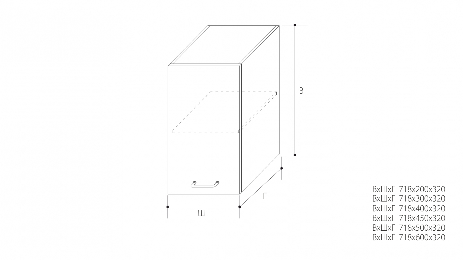 ВхШхГ: 718х300х320 мм.