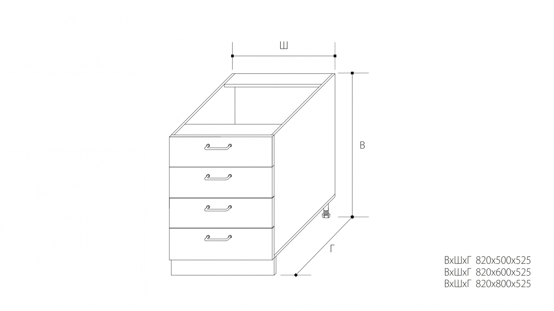 ВхШхГ: 820х800х525 мм.
