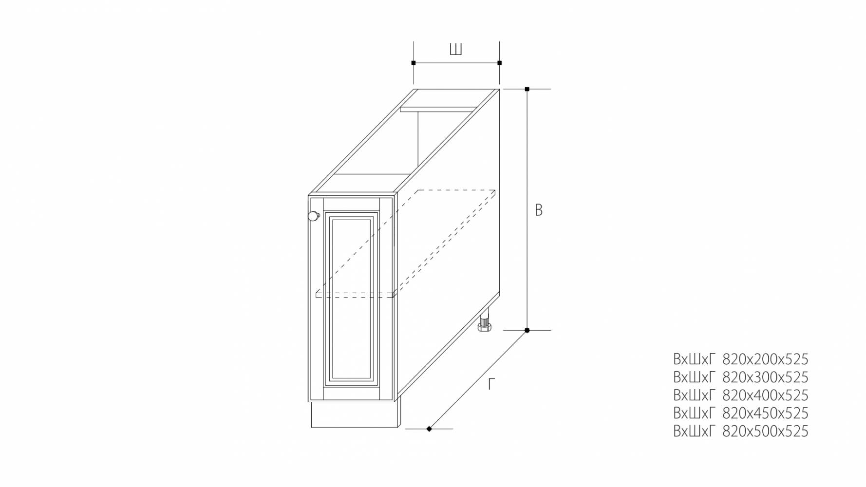 ВхШхГ: 820х400х525 мм.